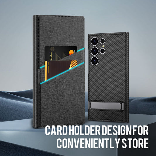 Coque de téléphone avec support pliable et porte-cartes pour Samsung S24Ultra