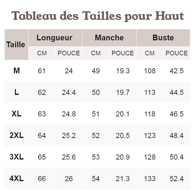 Taille : M, L, XL, 2XL, 3XL, 4XL